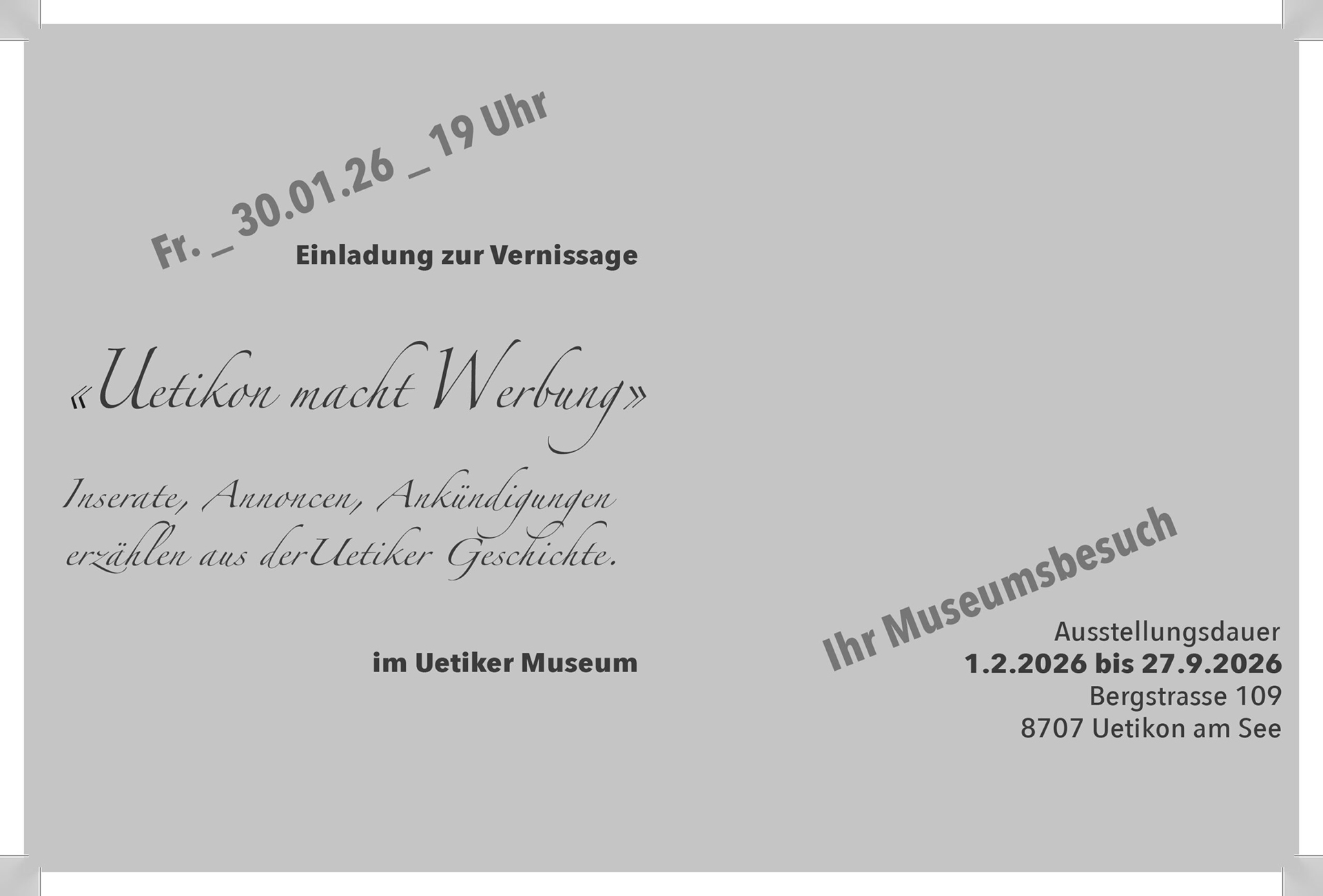Uetikon macht Werbung Vernissage am Freitag 30.Januar 2026 19 Uhr von admin | Jan. 19, 2026 | Ausstellungen
